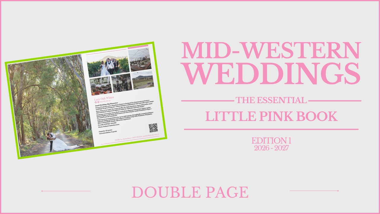 The Essential Little Pink Book is a beautifully curated A5 guide to weddings in the Mid-Western region - connecting couples with the venues, suppliers and inspiration shaping celebrations in 2026 and 2027.